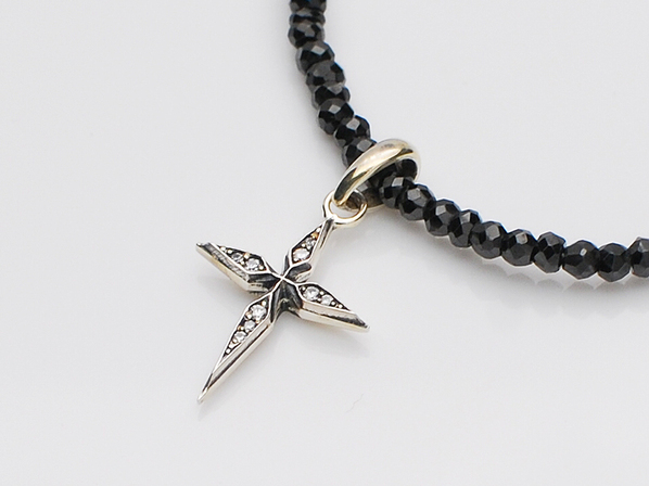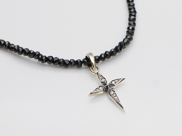 ◆極小のクロスにジルコニアをセッティングした小ぶりながらもその存在感と高級感を際立たせたペンダント。