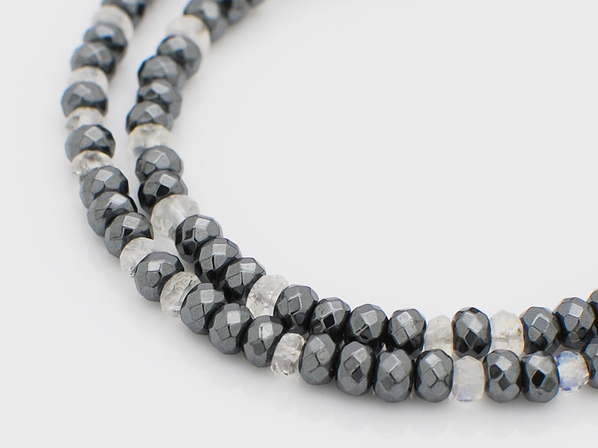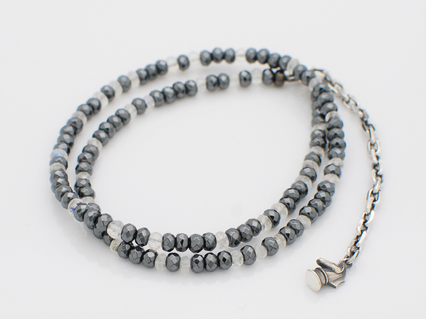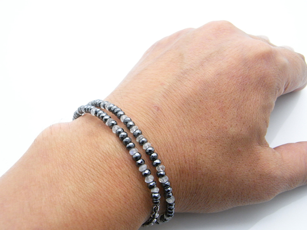 ◆ムーンストーンとヘマタイトをモノトーンでミックスしたブレスレットです。
