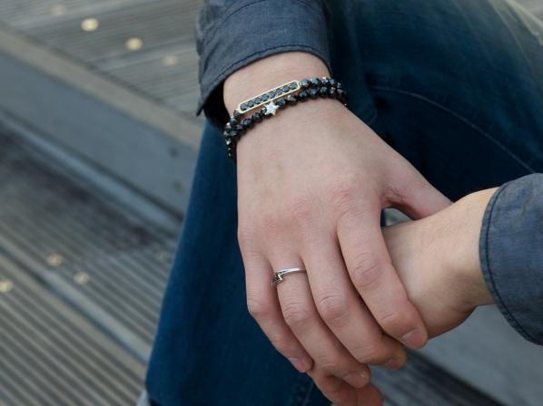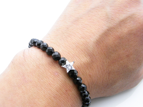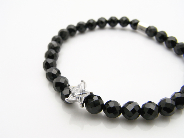 ◆スターカットのキュービックジルコニアを中心に、ブラックスピネルで連ねた新しいタイプの数珠型ブレスレットになります。