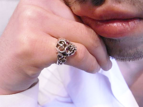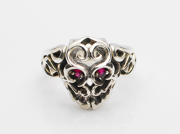 ◆スカル全体を透かしのトライバルでデザインした小ぶりのリングです。