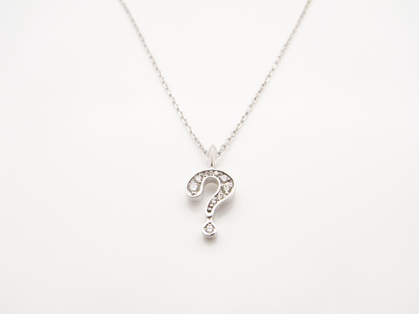 ◆クエスチョンマークをモチーフにキュービックジルコニアを敷き詰めた、高級感と遊び心が感じられる小ぶりなネックレスです。