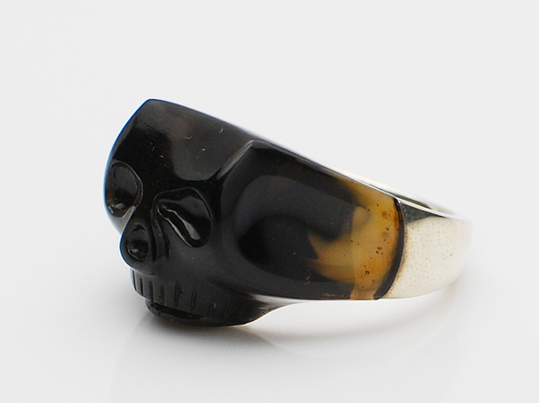 ◆名前の通りスモーキークオーツを削りだし、スカルにデザインされたリング。