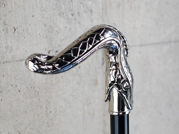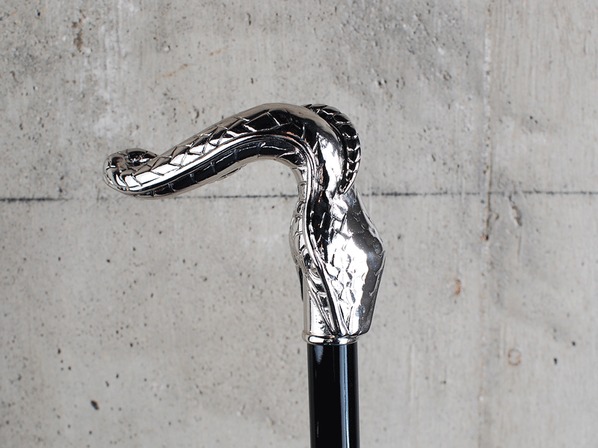 ◆ヘビが傘にかみついているインパクトのあるデザインで、手になじむ形状。