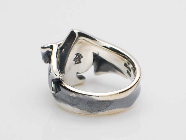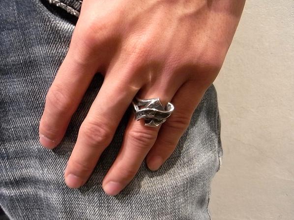 ◆プエルタの人気モチーフ・スペードにトライバル柄をデザインし、TATOOで使用されるリボン柄を巻き付けた立体的なフォルムが特徴のリングです。