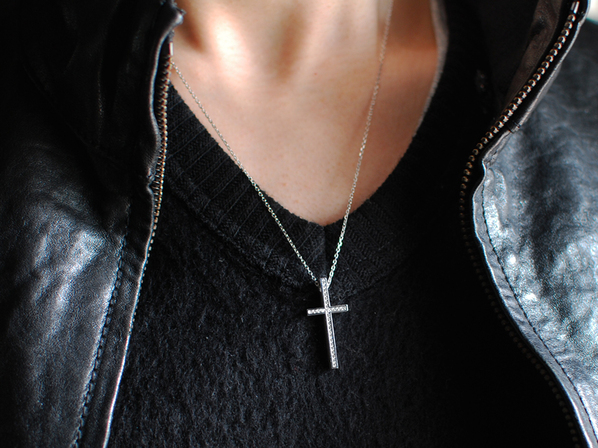 ◆表面にはキュービックジルコニア、裏面にはブラックキュービックジルコニアとリバーシブルでお楽しみ頂ける、シンプルでラグジュアリーなネックレスです。