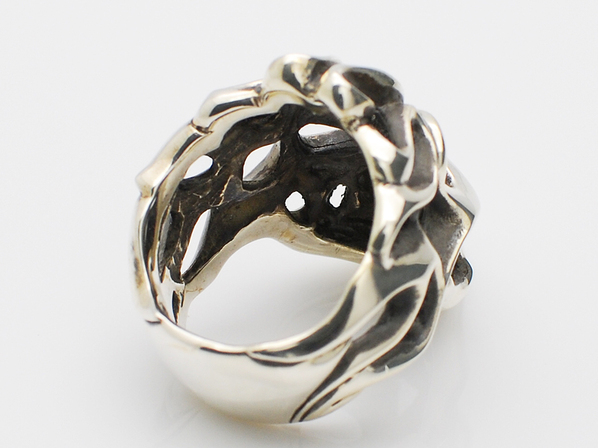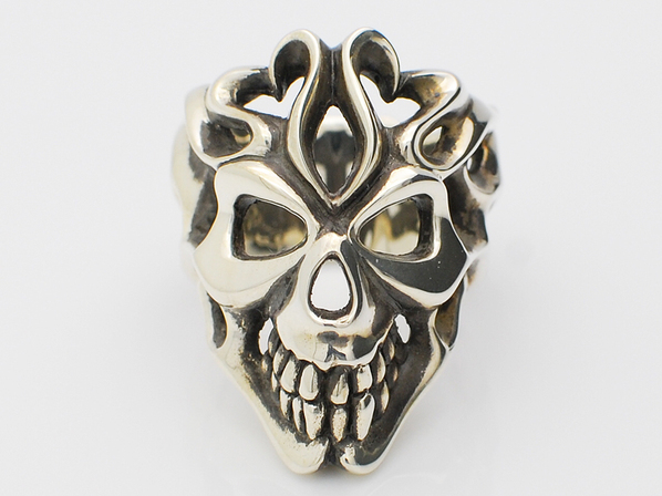 ◆アメリカンカルチャーの象徴といえる、ファイヤーパターンの新しいスタイルを取り入れたスカルリングです。