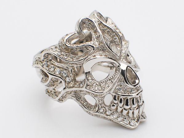 ◆アメリカンカルチャーの象徴といえる、ファイヤーパターンの新しいスタイルを取り入れたスカルリングです。