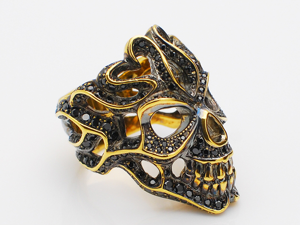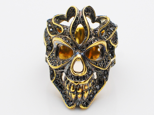 ◆アメリカンカルチャーの象徴といえる、ファイヤーパターンの新しいスタイルを取り入れたスカルリングです。