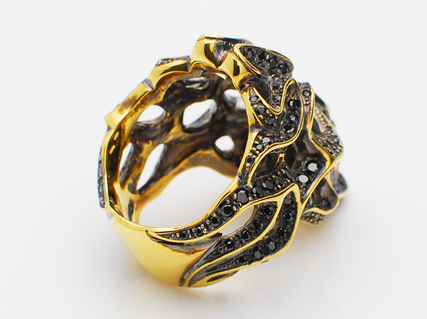 ◆ファイアーパターンに沿ってブラックキュービックジルコニアを”240ピース”パヴェセッティングした精巧な作りは、他に見る事はない仕上がり。