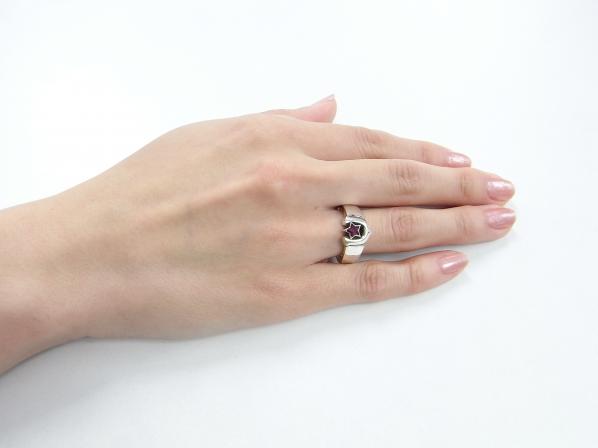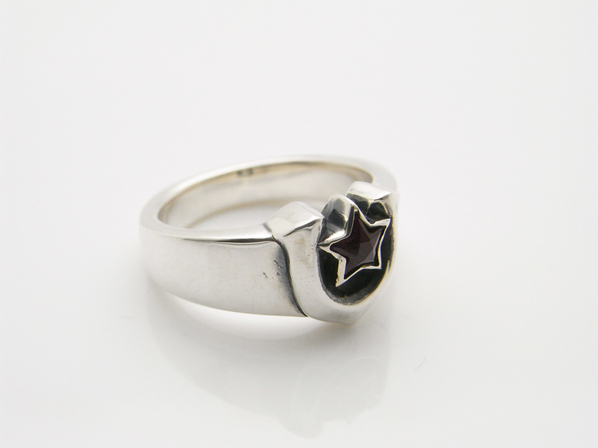 ◆馬蹄の中央にスターカットしたシンセティックルビーをセッティングし、色合いを演出しています。