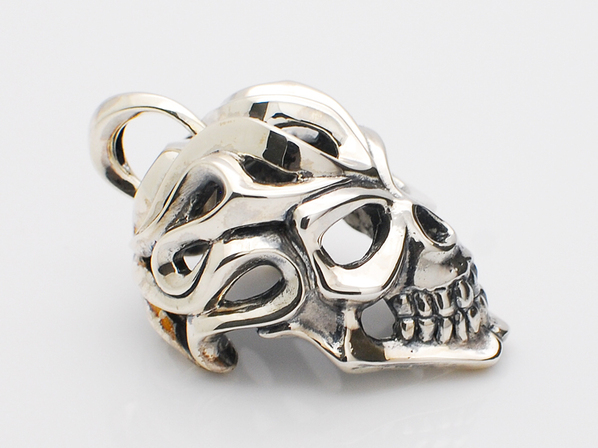◆スカルヘッドをファイヤーパターンで表現したダイナミックな3Dスカルペンダントです。