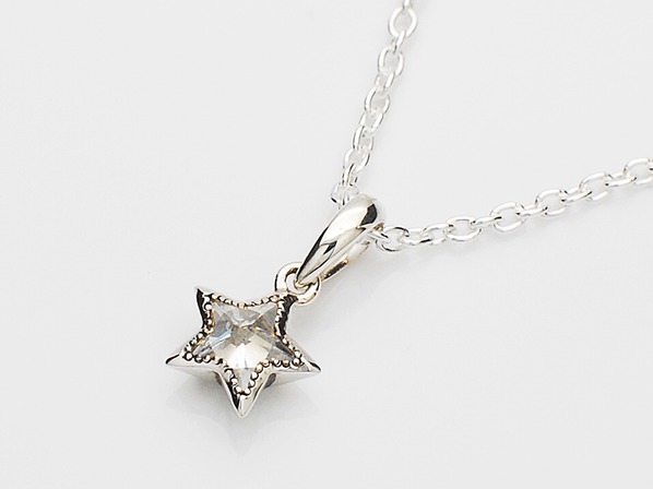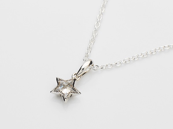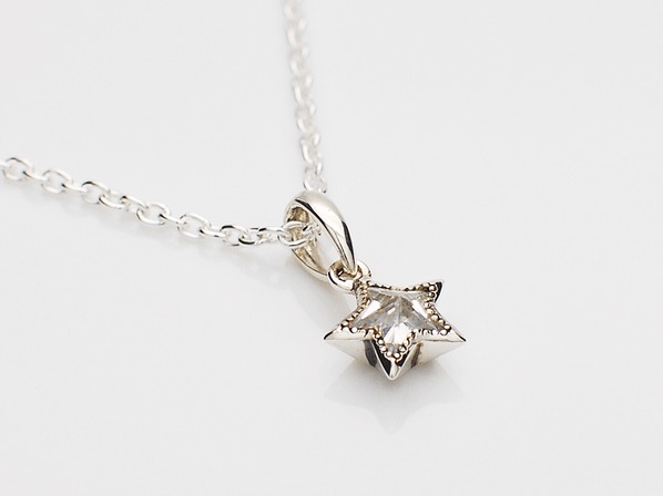 ◆オリジナルカットのキュービックジルコニアをセットしたスターモチーフのネックレスです。