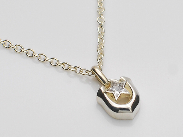 ◆幸運を呼び込むとされるホースシューと人気モチーフクラシックスターを組み合わせたネックレスになります。