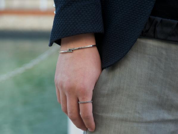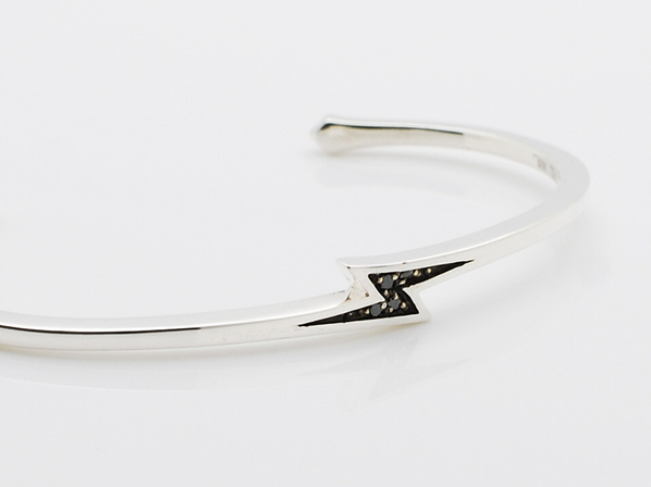 ◆ガーデルの人気モチーフ”イナズマ”をデザインしたバングルで、イナズマにはブラックダイアモンドがセッティングされています。