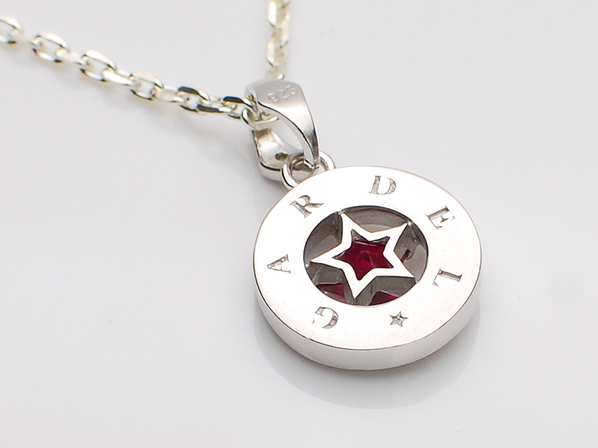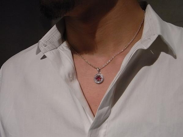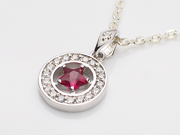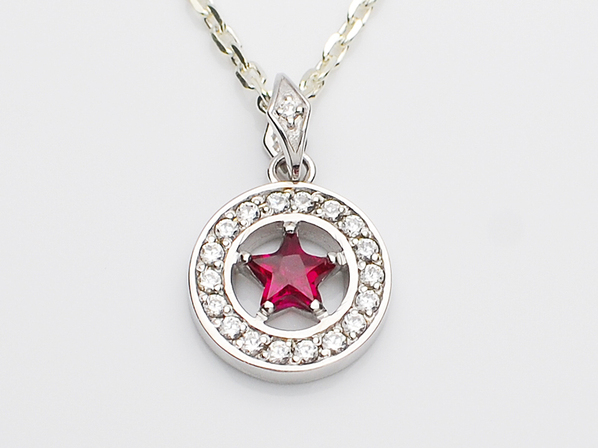 ◆オリジナルカットのスターのシンセティックルビーを取り囲むように、ジルコニアを丁寧にセッティングしたネックレスになります。