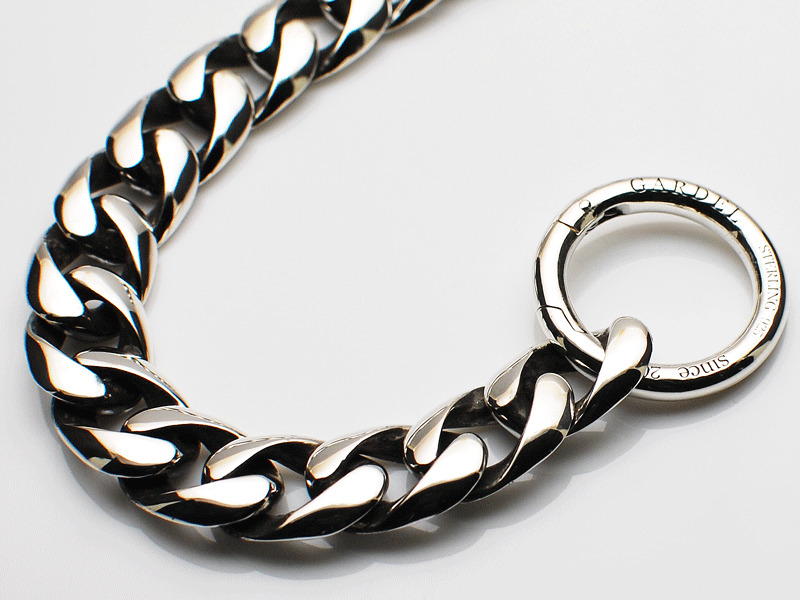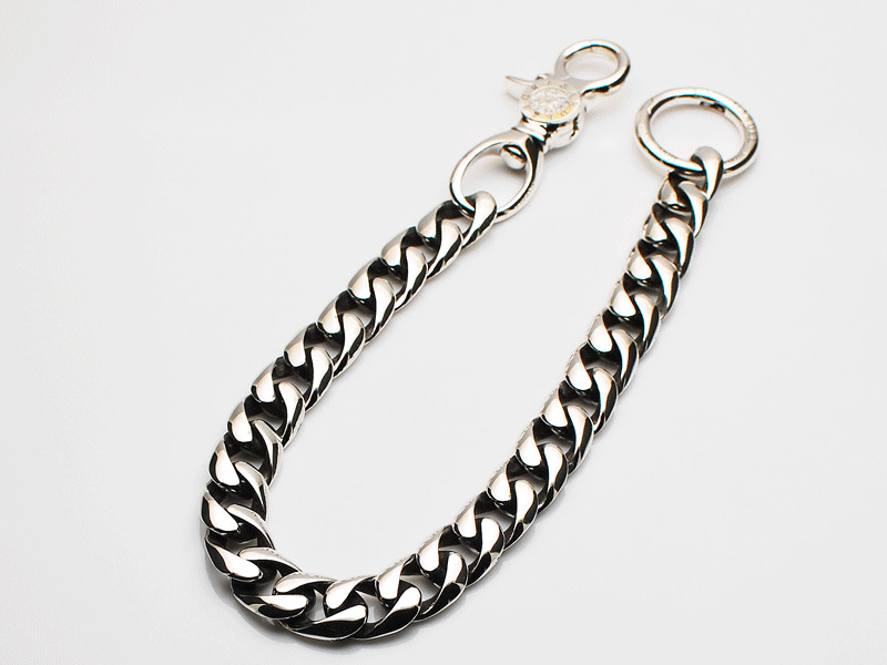 ◆あえて短めにすることで(全長37cm)、ジャケットスタイルにもカジュアルなスタイルにもマッチする大人のウォレットチェーンです。