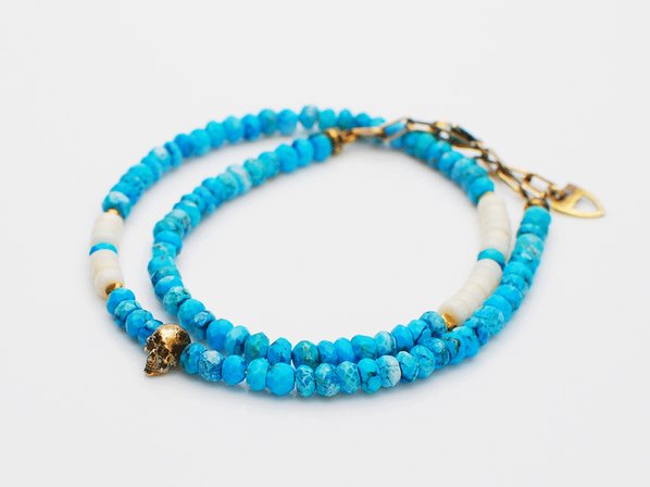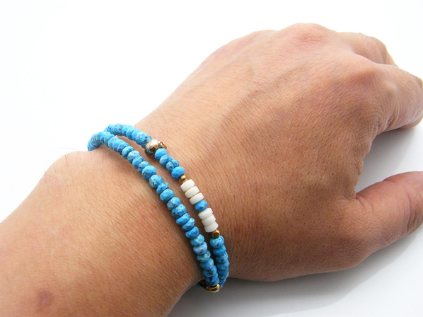 ◆ターコイズとホワイトコーラルを使用した2重巻きのブレスレットです。