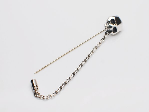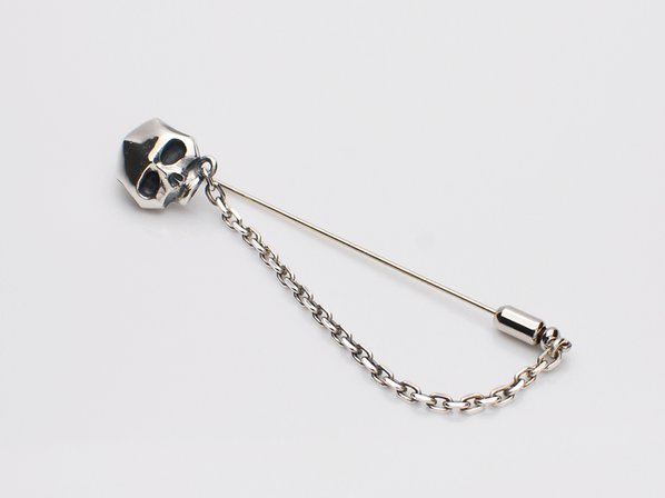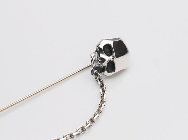 ◆ハットやジャケットにセットするスカルモチーフのラペルピンです。