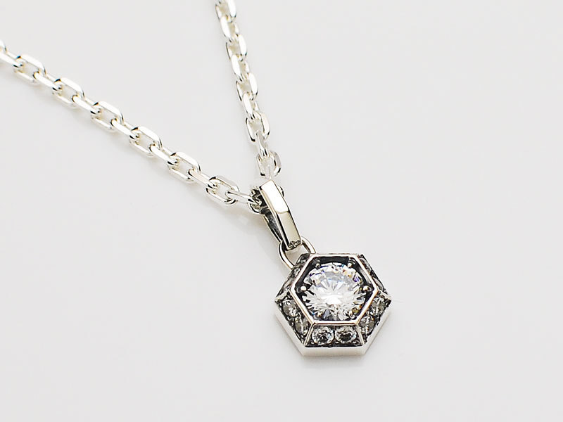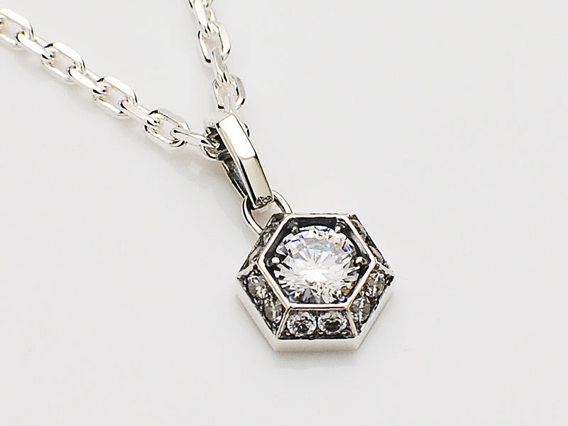 ◆ラウンドカットした中央のジルコニアを、細かいジルコニアが囲む華やかなチャームです。
