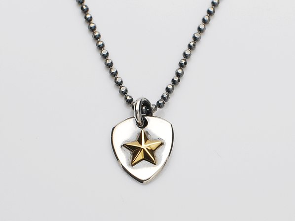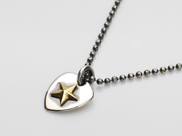 ◆いぶし加工された重厚感あるシルバーと、18金イエローゴールドスターのコントラストがポイントに。