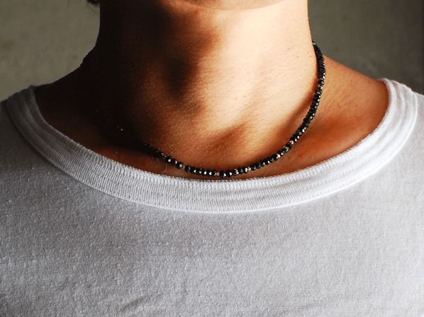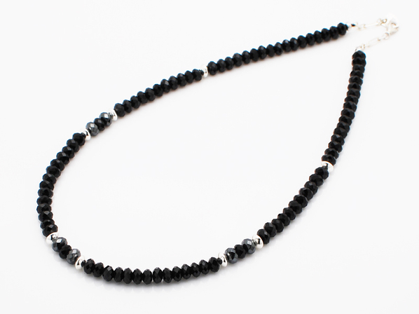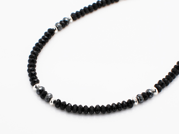 ◆シルバービーズとブラックスピネル、ヘマタイトを組み合わせたネックレスです。