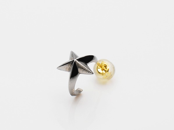 ◆立体的なスターが、巻き付くようにデザインされたフープ型のピアスになります。