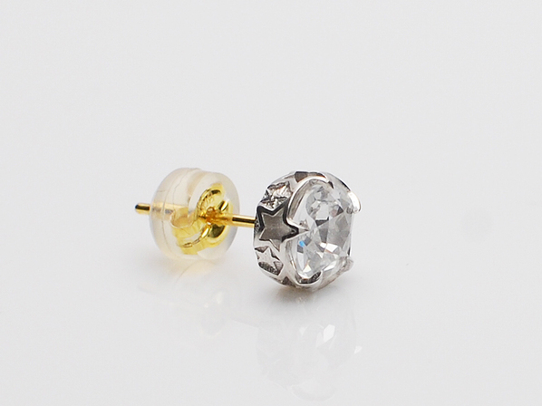◆表面を星形にカットしたキュービックジルコニアを、シンプルに台座にセッティングしたピアスになります。