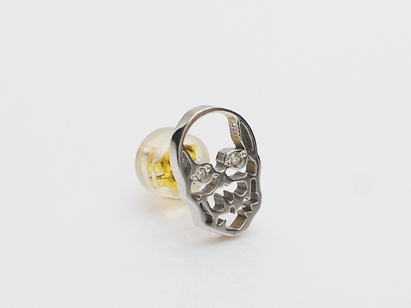 ◆平面のスカルに透かしを施した、これまでにない新しいフォルムのピアスです。