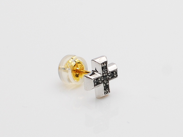 ◆シンプルでエッジの効いたフォルムのクロスに、ブラックキュービックジルコニアをセッティングしたピアスで、付け方次第でクロスにもエックスにもなる遊び心あるアイテムです。