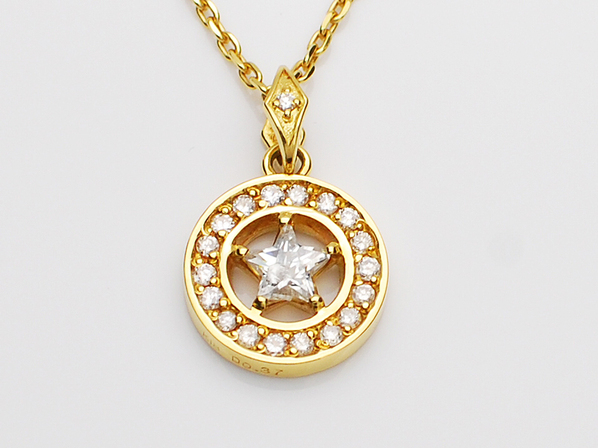 ◆オリジナルカットのスターのジルコニアを取り囲むように、ダイヤモンドを丁寧にセッティングしたラグジュアリーな18金のネックレスです。