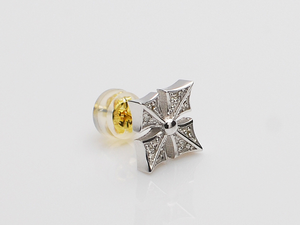 ◆クラシックなフォルムのクロスにキュービックジルコニアを8石施したピアスです。