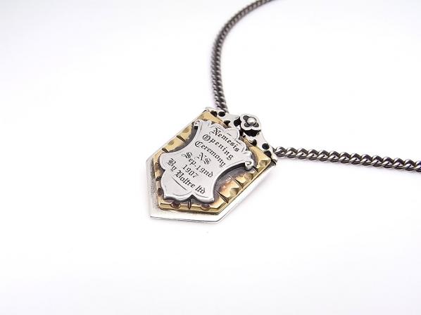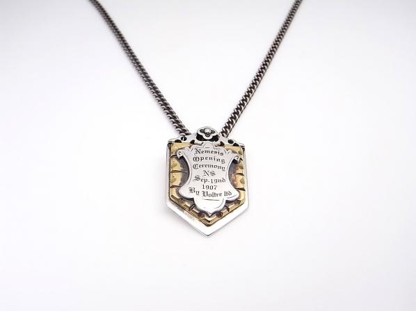 ◆シルバーとブラス(真鍮)の異素材を使用することで、コントラストを際立たせたシールドモチーフのネックレスです。