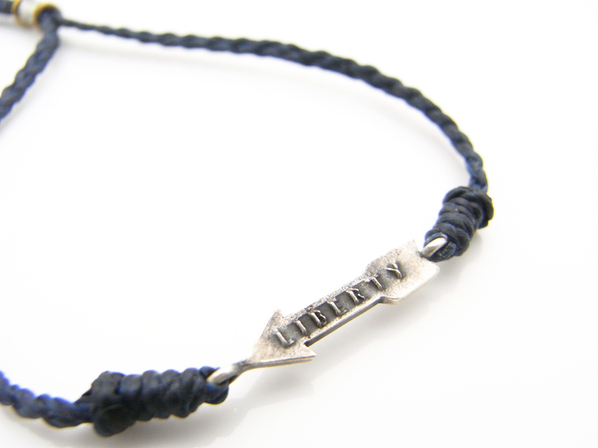 ◆インディゴ染めしたワックスコードにARROWをアクセントにしたブレスレットです。