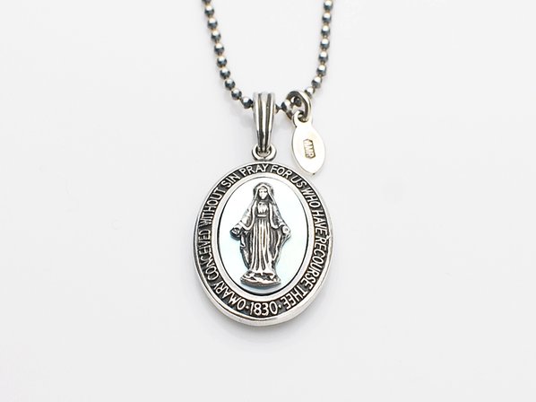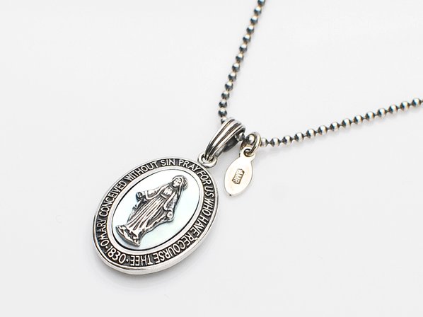 ◆白蝶貝を切り出し、メダイにセットした、他にはないマリアネックレスです。