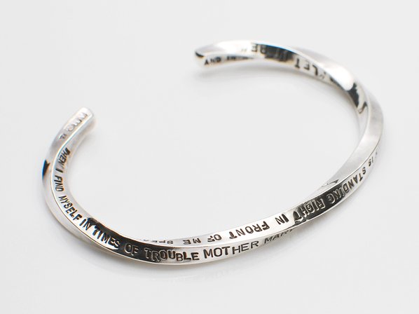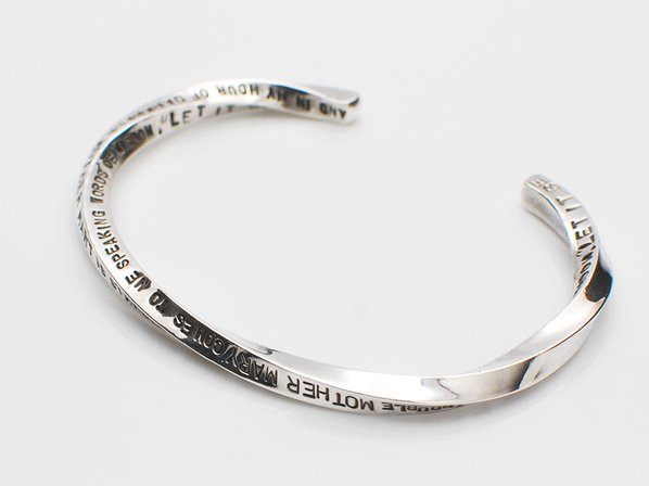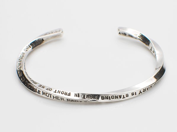 ◆ツイストされたバングルに、その歌詞を大小の手打ち刻印で表現した味わいのあるアイテムで、オールハンドメイドの温かみも◎。