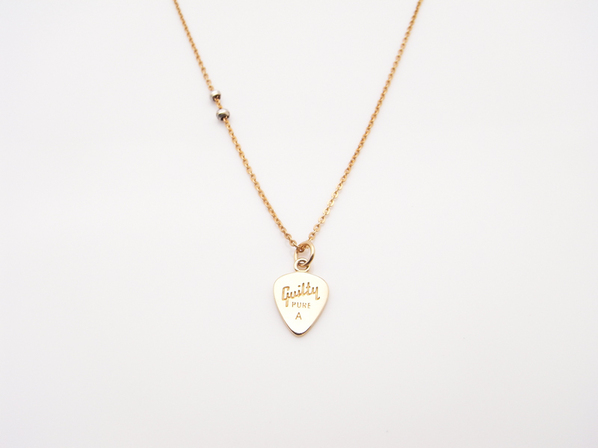 ◆ピックのトップは10金無垢で、チェーンはK14ゴールドフィルドというアメリカではポピュラーな素材を使用。