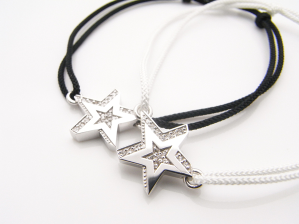 ◆軽めのティストにする為コードを使用していますが、エッジが際立つスターに、キュービックジルコニアを施すことでよりラグジュアリー感を演出しています。