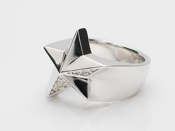 ◆星をモチーフに見る角度により輝きを増すようジルコニアを配置した、程よいボリューム感のスターリングです。