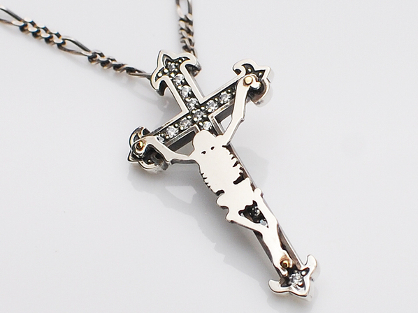 ◆クロスにはキュービックジルコニアを施し、スカルをK18のピンではりつけた、とても手のこんだアイテムです。