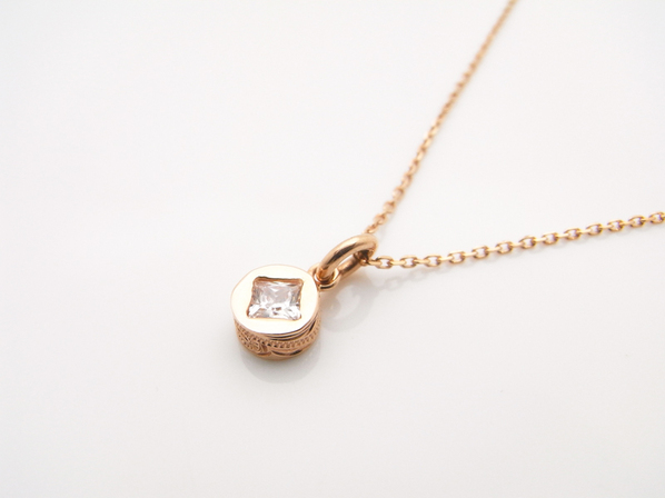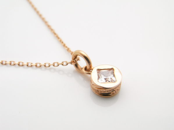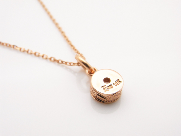 ◆つけやすいサークルデザインにキュービックジルコニアを埋め込んだ、K14ピンクゴールド製のペンダントヘッドです。