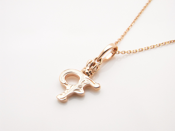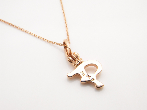 ◆イニシャル(F)にクラウンをあしらい、彫り模様を施したLONOを代表するペンダントヘッドで、K14ピンクゴールド製になります。