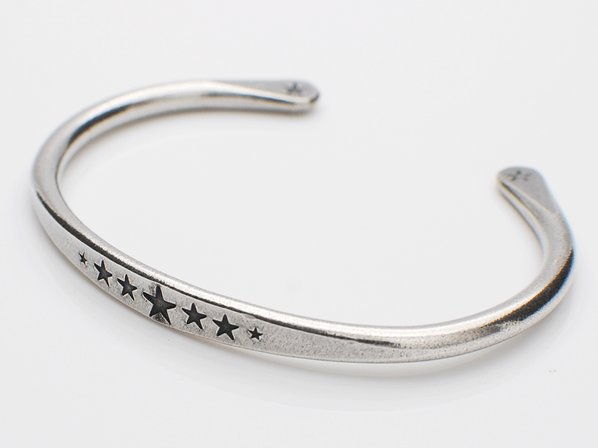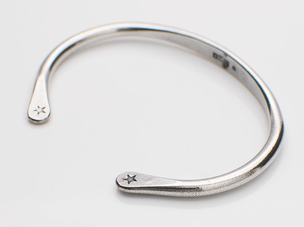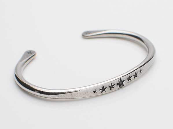 ◆ブラス(真鍮)にシルバーコーティングを施し、温かみのある仕上げとポップなスターが腕もとを軽快に演出します。
