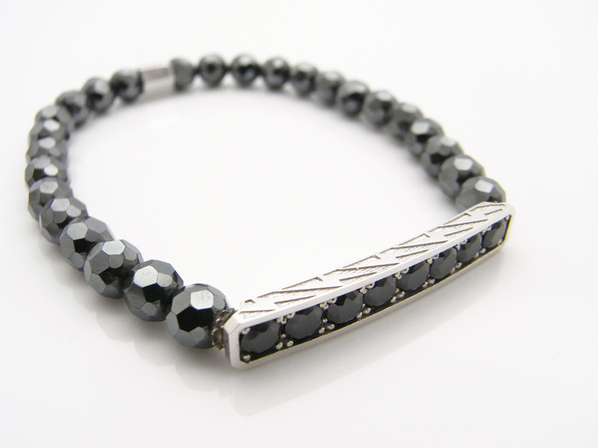 ◆エッジの効いた中央のバーにブラックキュービックジルコニアをセッティングし、ヘマタイトでジョイントした数珠型の新しいブレスレットになります。