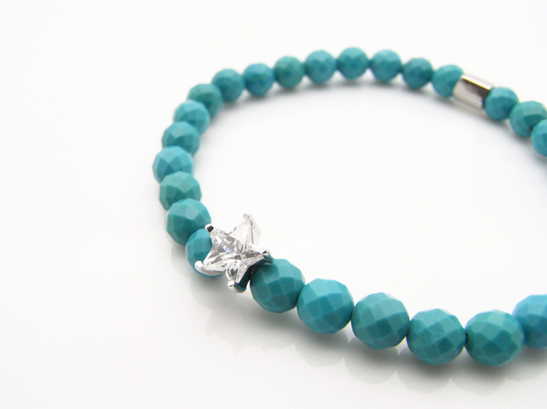 ◆スターカットのキュービックジルコニアを中心に、”天然”のターコイズで連ねた新しいタイプの数珠型ブレスレットになります。