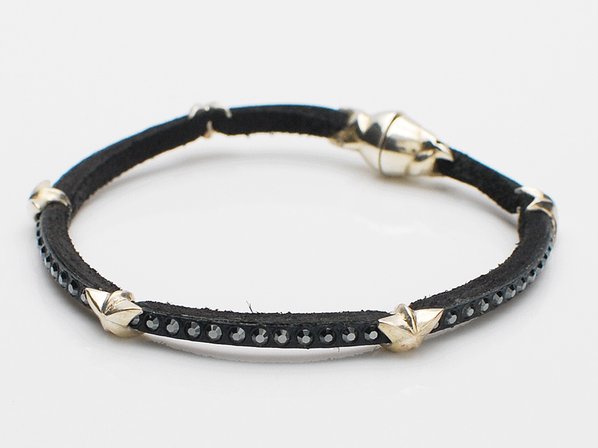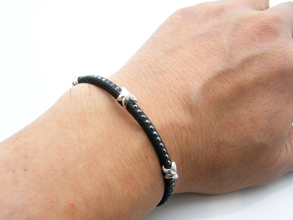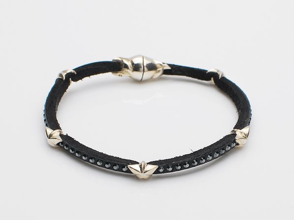 ◆細身のレザーに、ブラックダイヤモンドスワロフスキーをセットしたブレスレットです。