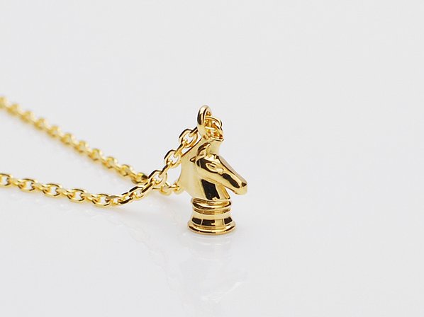 ◆プエルタのアイコン〈ナイト〉をスモールサイズにし、18金製で仕上げたラグジュアリーなネックレスです。