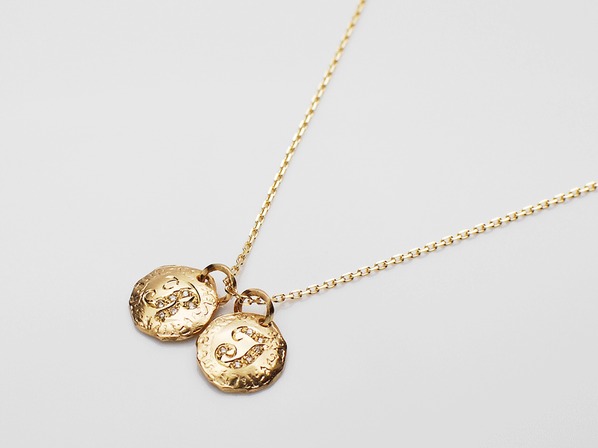 ◆K10イエローゴールドを使用し、手彫りのイニシャルにダイヤモンドを施したペンダントトップで、