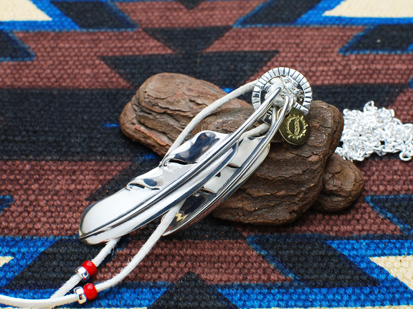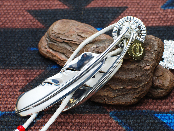 ◆ウイングフェザーXL(right)とL(right)、K18YGインゴットビット、メディスンホイール(M)、チェーン(¥13,000)を組み合わせています。