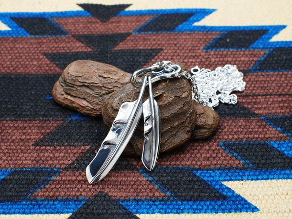 ◆ウイングフェザーL(right)、M(right)とラトルスネイクL(¥21,000)、チェーン(¥13,000)を組み合わせています。