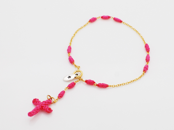 ◆こちらは、K14gold filledにポップアートを彷彿させるカラフルな綿糸を巻き付けた、男女共お楽しみ頂けるブレスレットです。